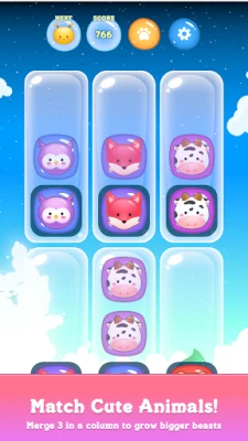 Készülj fel egy elbűvölő logikai kalandra, ahol az állatvilág összeolvadó csodái várnak! Merülj el egy frissítő és stratégiai játékélményben, ahol a célod, hogy három azonos állatot egy oszlopban párosítva nagyobb és még csodálatosabb lényeket hozz létre. Kezdd a legegyszerűbb teremtményekkel, és juss el a fenséges elefántig, miközben minden lépés egy új kihívást rejt. Mozgasd, cseréld és gondosan helyezd el a lapkákat, de légy óvatos: minden mozdulat után új állatok jelennek meg a táblán, korlátozva a helyet. A feladatod, hogy ügyesen manőverezz, és minél több összeolvasztást hajts végre, mielőtt a játéktér megtelne, véget vetve a fejlődésednek.