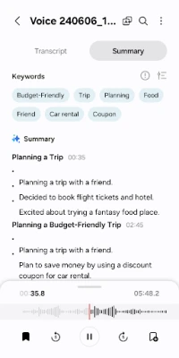 Készítsen lenyűgöző hangfelvételeket könnyedén, bárhol és bármikor, a Galaxy eszközökkel kompatibilis sokoldalú alkalmazással! Legyen szó gyors emlékeztetőről, fontos előadásról vagy spontán ötletekről, ez a professzionális hangrögzítő lehetővé teszi, hogy pillanatok alatt elkezdje a felvételt – akár okostelefonról, táblagépről vagy akár okosóráról. A beépített mikrofon mellett kényelmesen használhat Bluetooth headsetet vagy külső mikrofont is, biztosítva a kristálytiszta hangzást, függetlenül attól, hol tartózkodik.